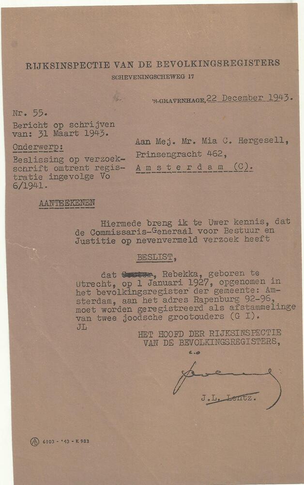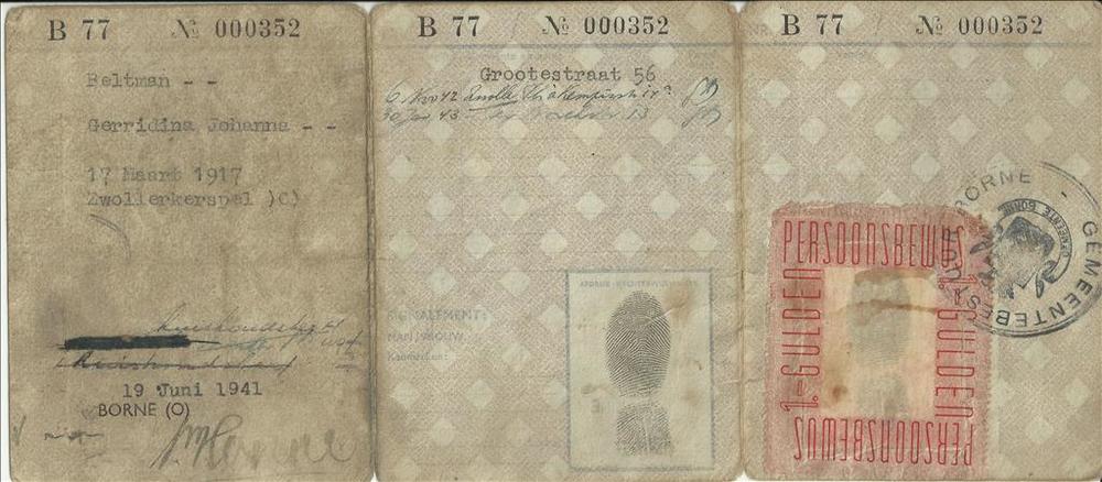 Persoonsbewijs op naam van Gerridina Johanna Beltman