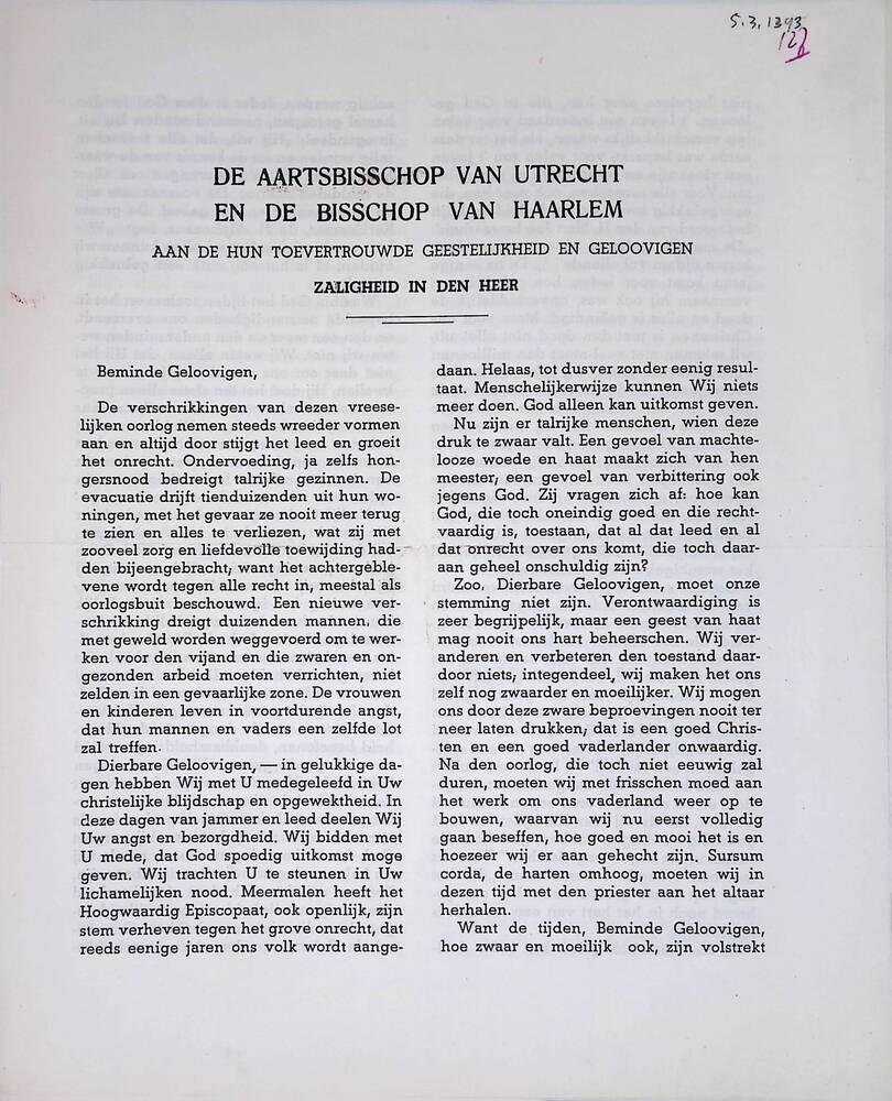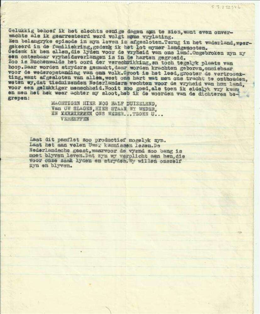 OPROEP DER WETTIGE NEDERLANDSCHE REGERING gericht to...