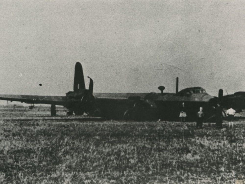 Foto van wrak van Short Stirling die een noodlanding...