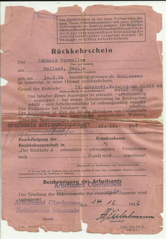 Rückkehrschein terugkeer uit Duitsland kaart van Joh...