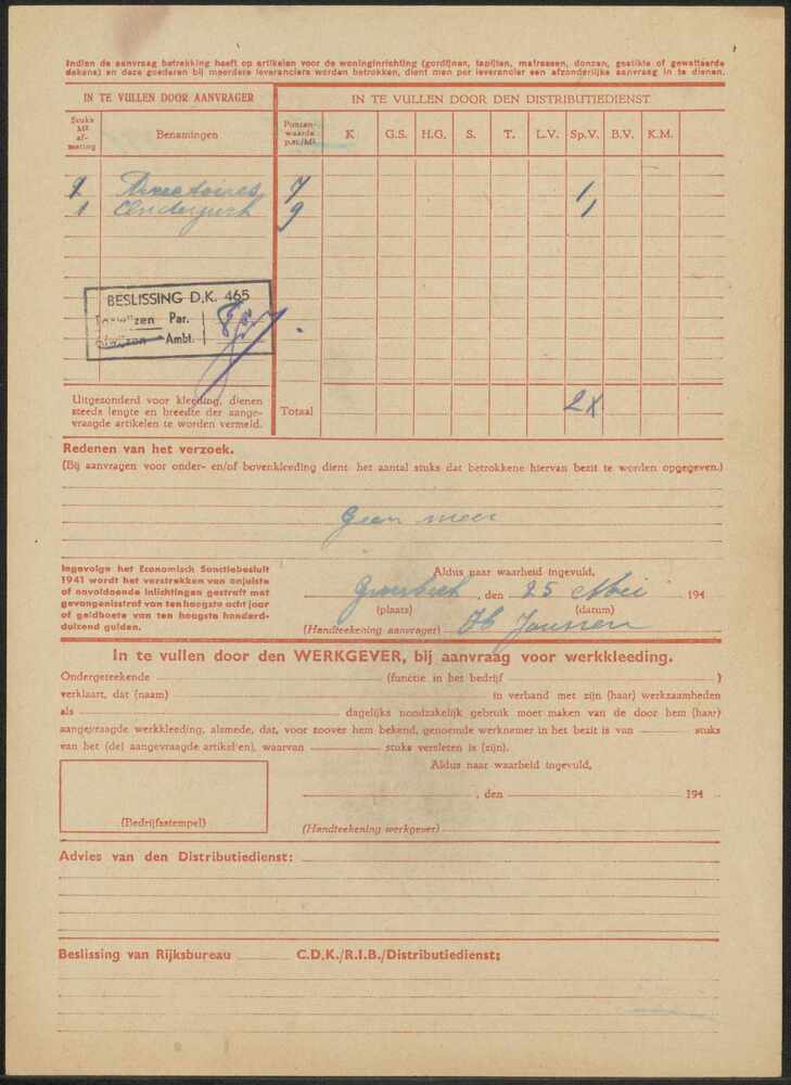 Aanvraag voor extra textielgoederen, Groesbeek