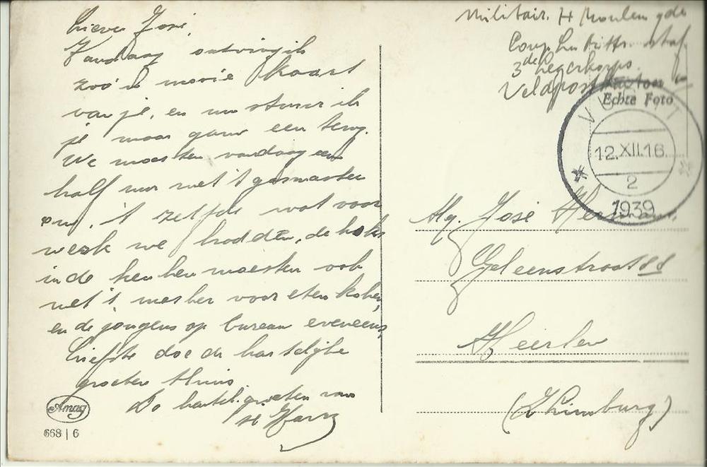 Ansichtkaart met daarop de afbeelding van een soldaa...