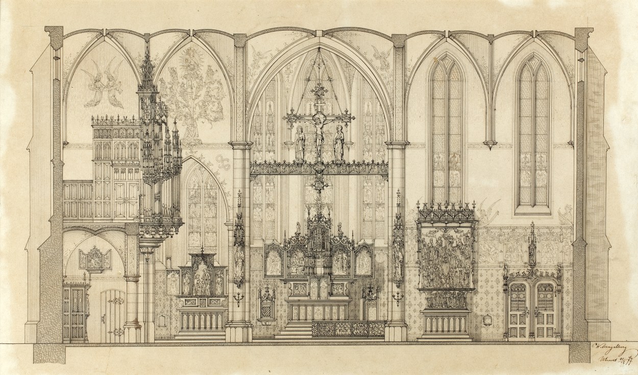 Ontwerp glasraam Neuss, bovendeel van raam aanbiddin...