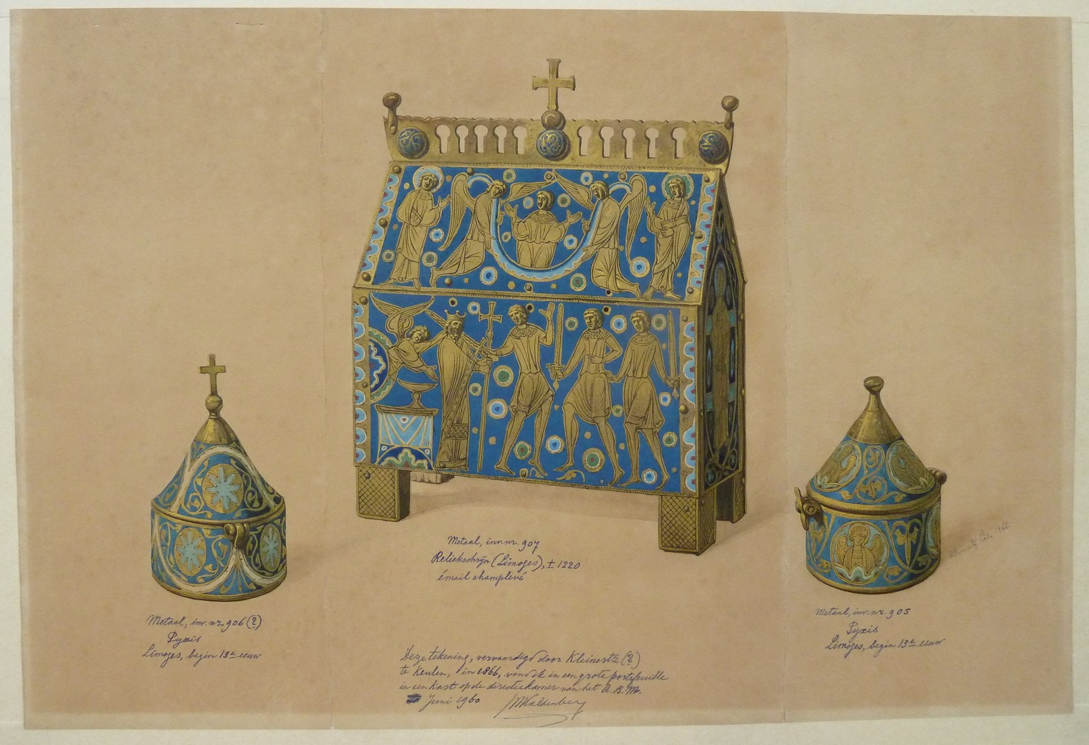 Reliekschrijn ABM m907, pyxis ABM m905 en links een ...