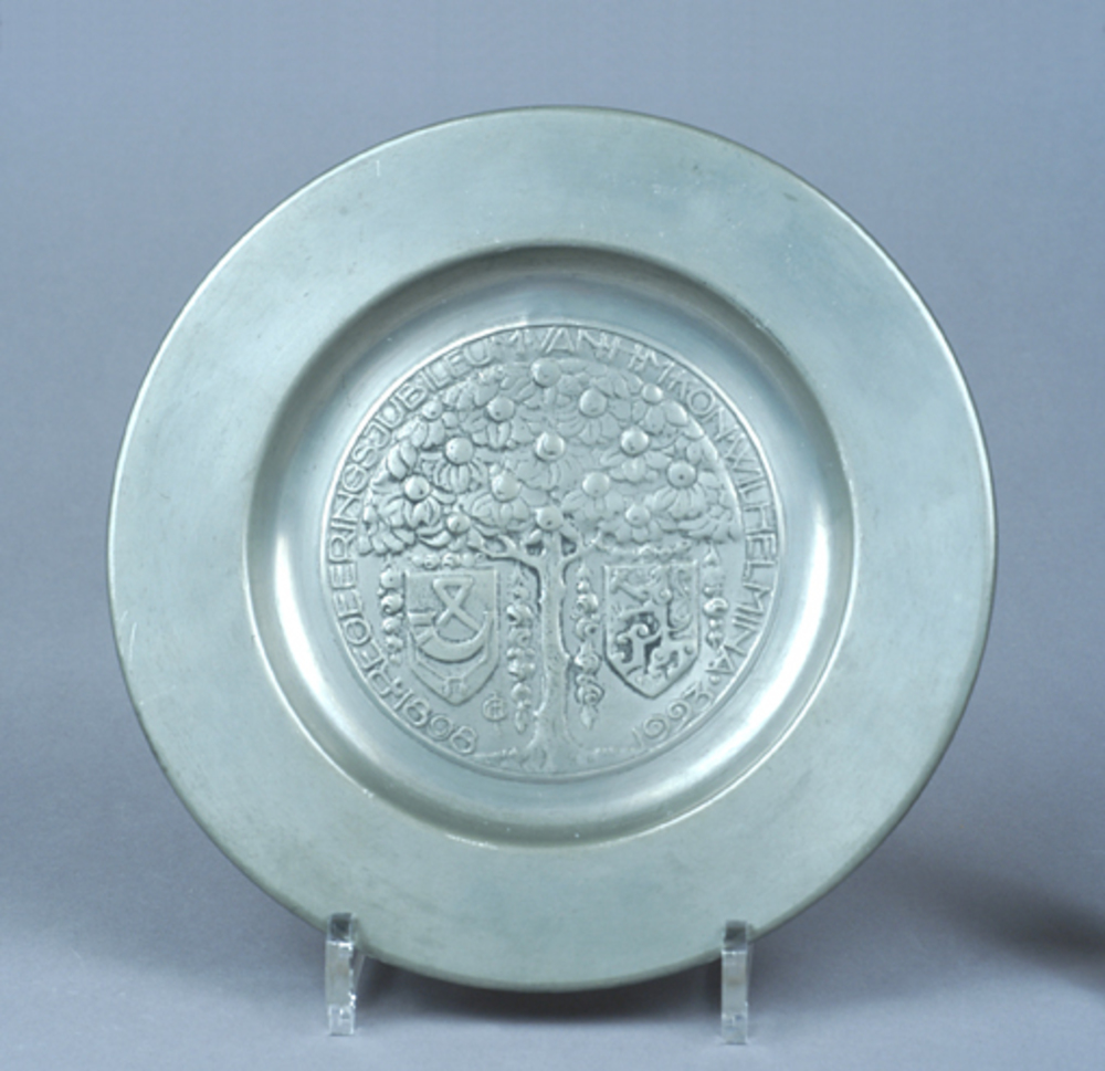 tinnen herinneringsbord tgv. het 25 jarig regeringsj...