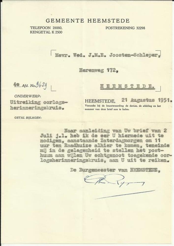 Gemeente Heemstede - uitreiking Oorlogsherinneringsk...