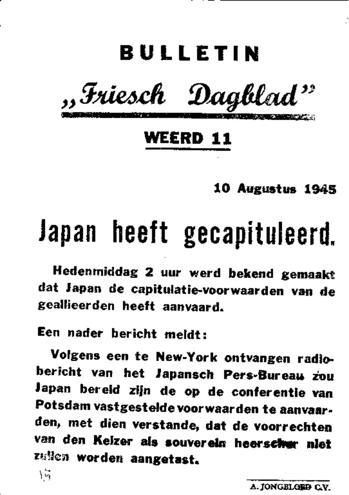 Bulletin "Friesch Dagblad" 10 augustus 1945