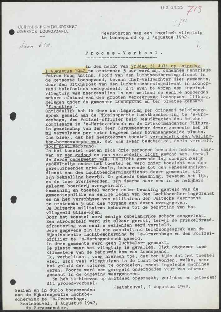 Proces-verbaal Luchtbeschermingsdienst Loon op Zand ...