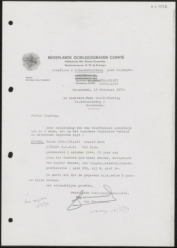 Brief, Nederlands Oorlogsgraven Comité, 13 februari ...