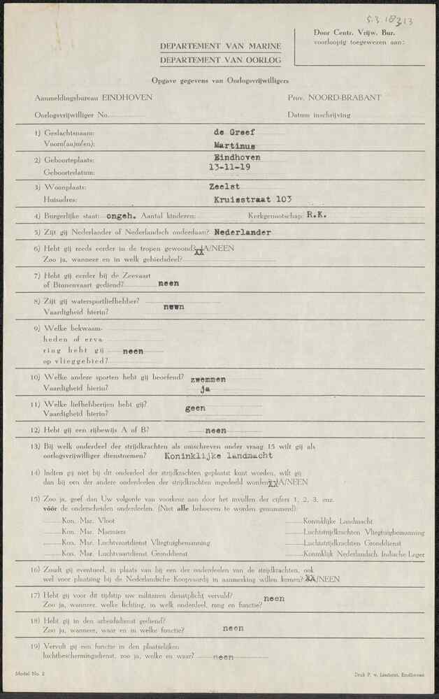 Aanmeldingsformulier oorlogsvrijwilliger Aanmeldings...
