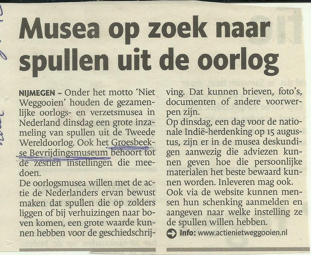 Musea op zoek naar spullen uit de oorlog