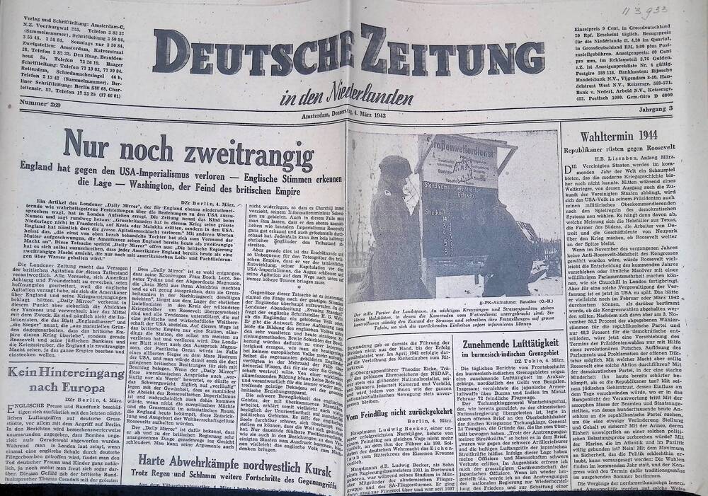 Deutsche Zeitung in den Niederlanden. 4 maart 1943.