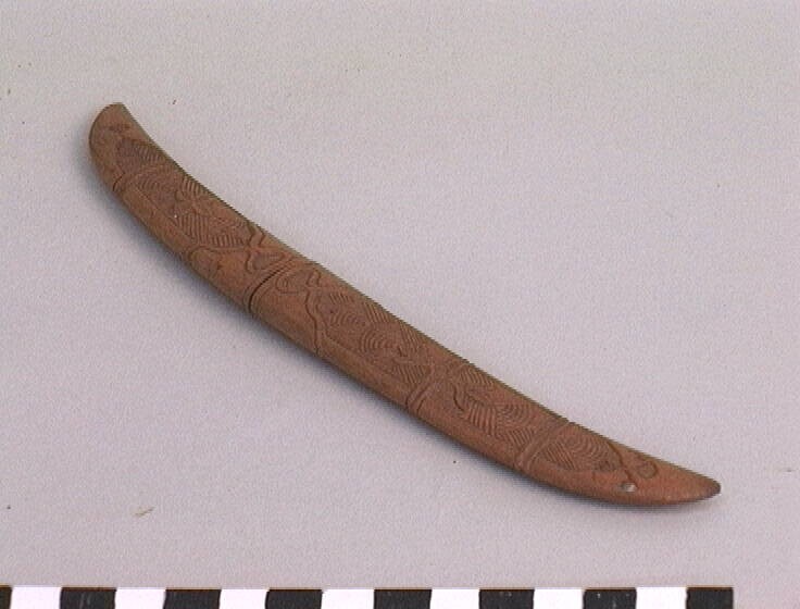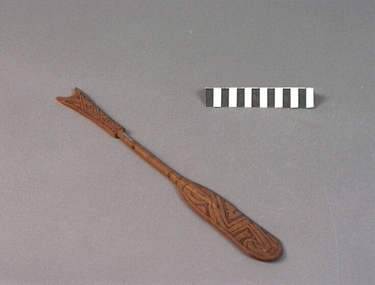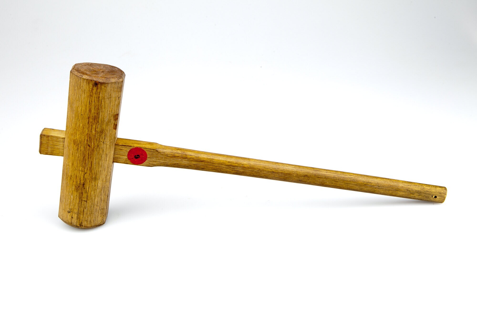 Een houten roerlepel dan wel stamper voor in een vijzel
