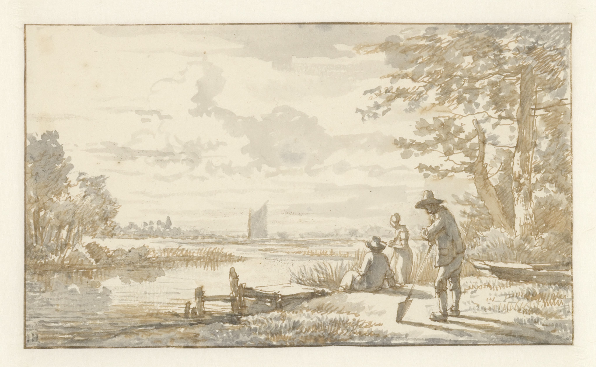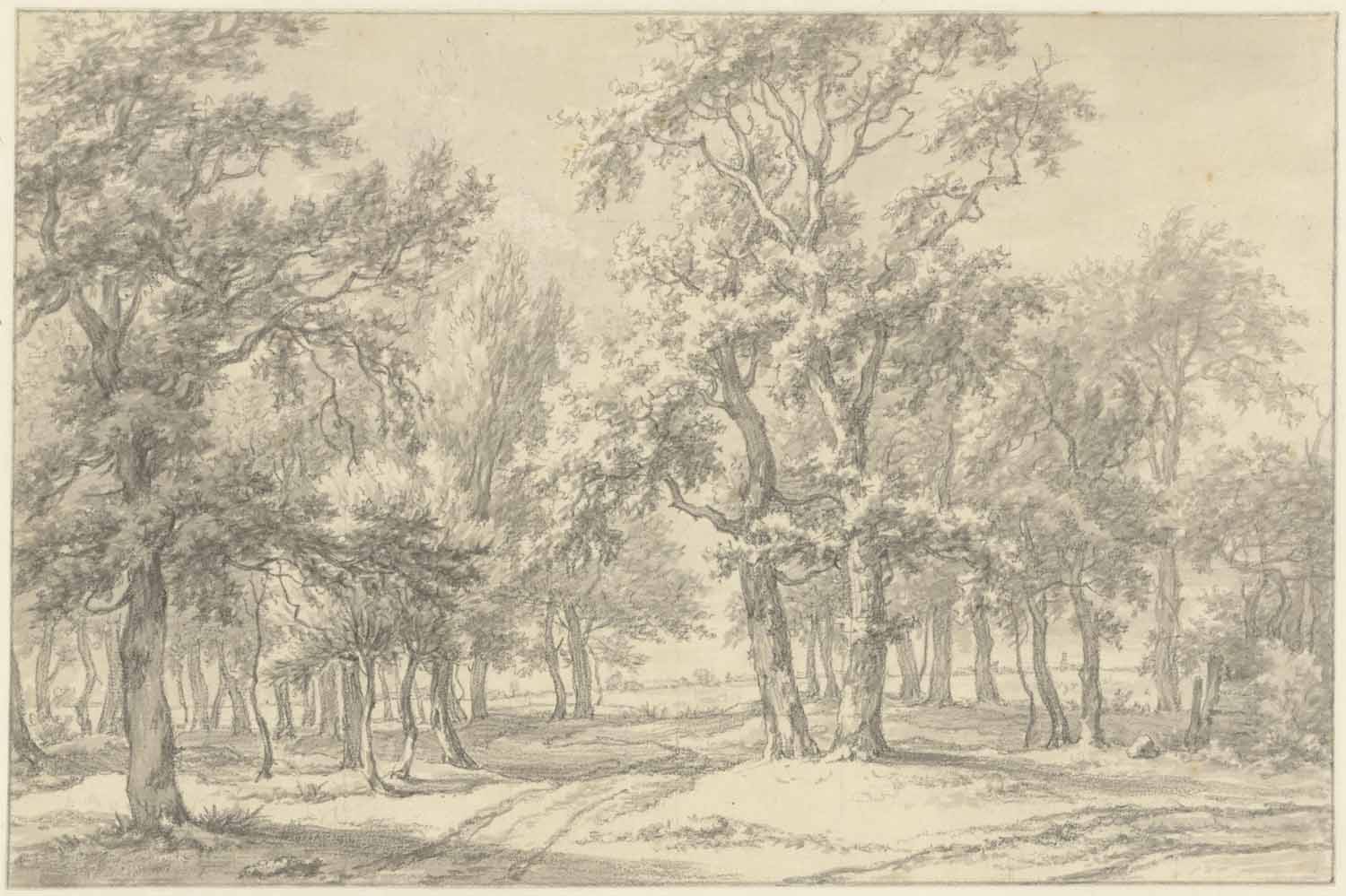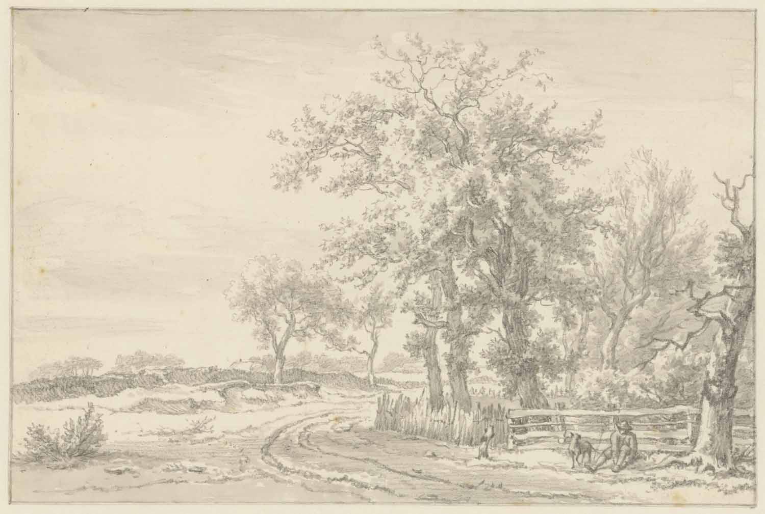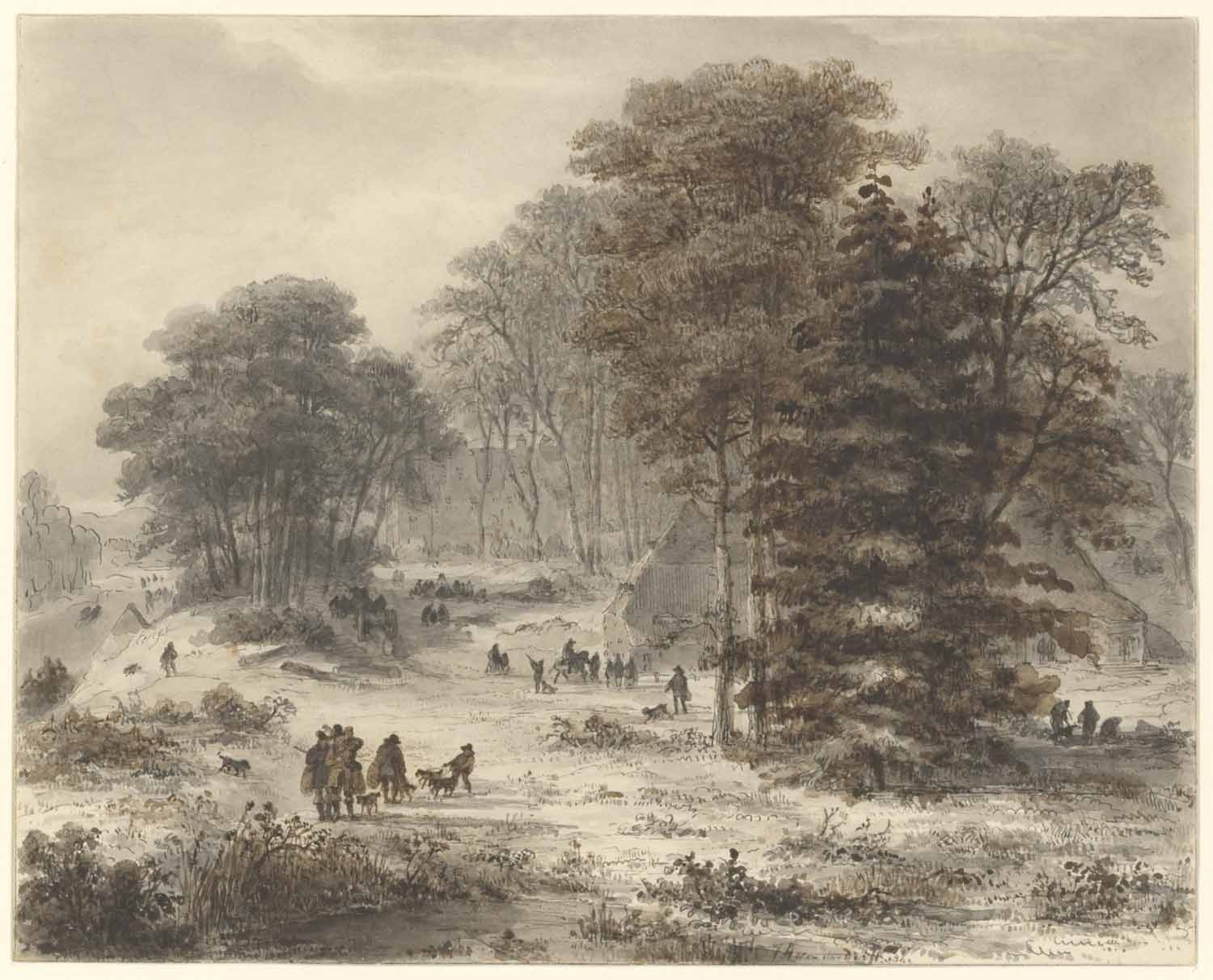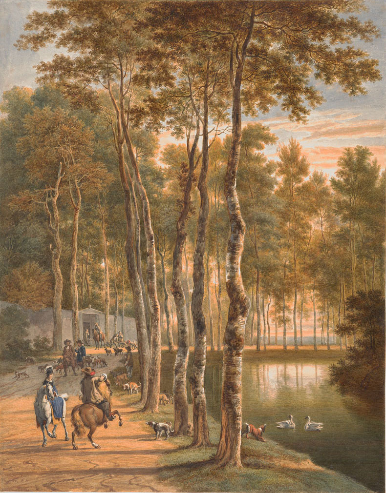 Eene laan, waarin een heer en eene dame met gevolg, ...
