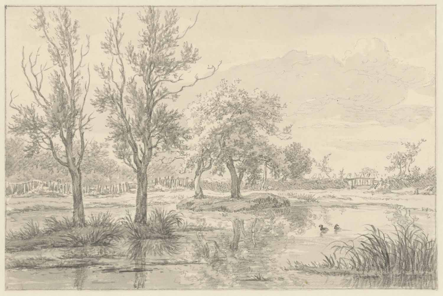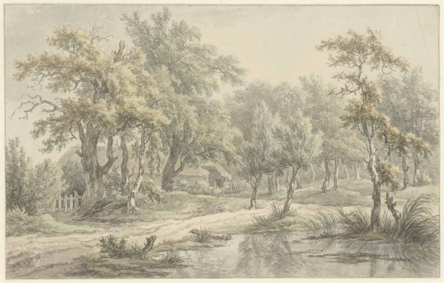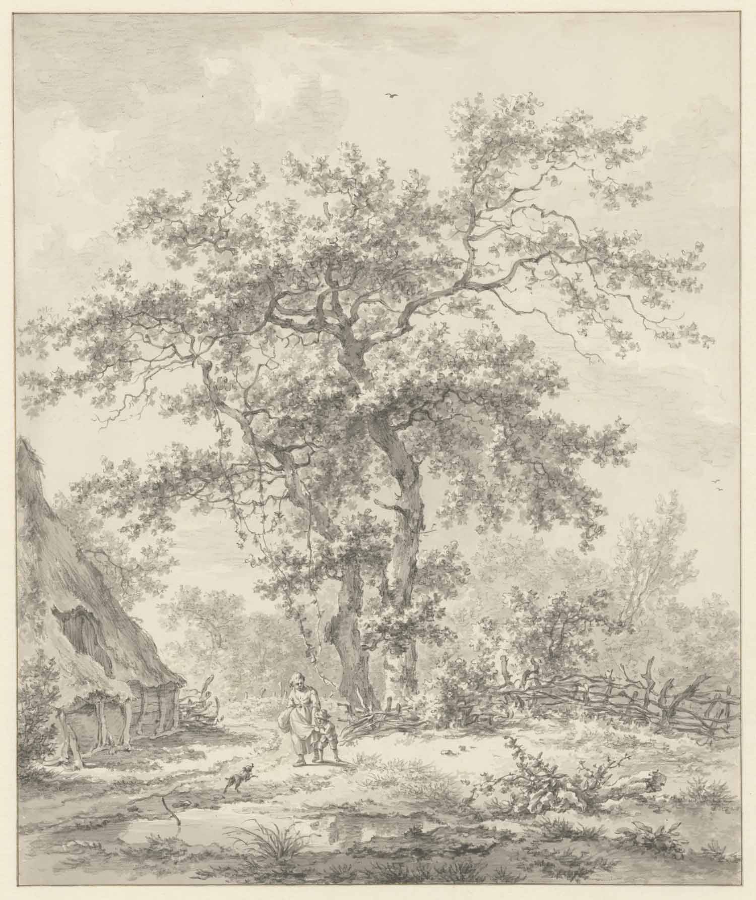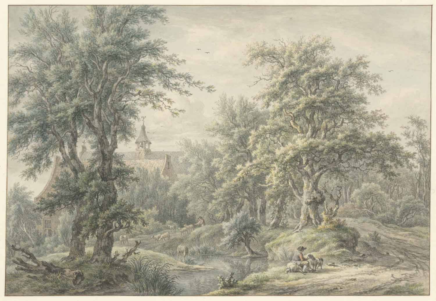 Eene laan, waarin een heer en eene dame met gevolg, ...