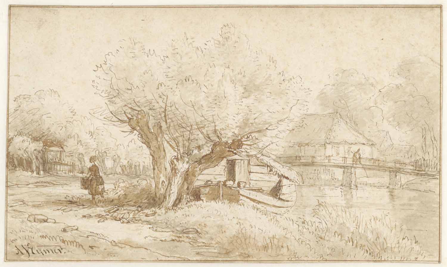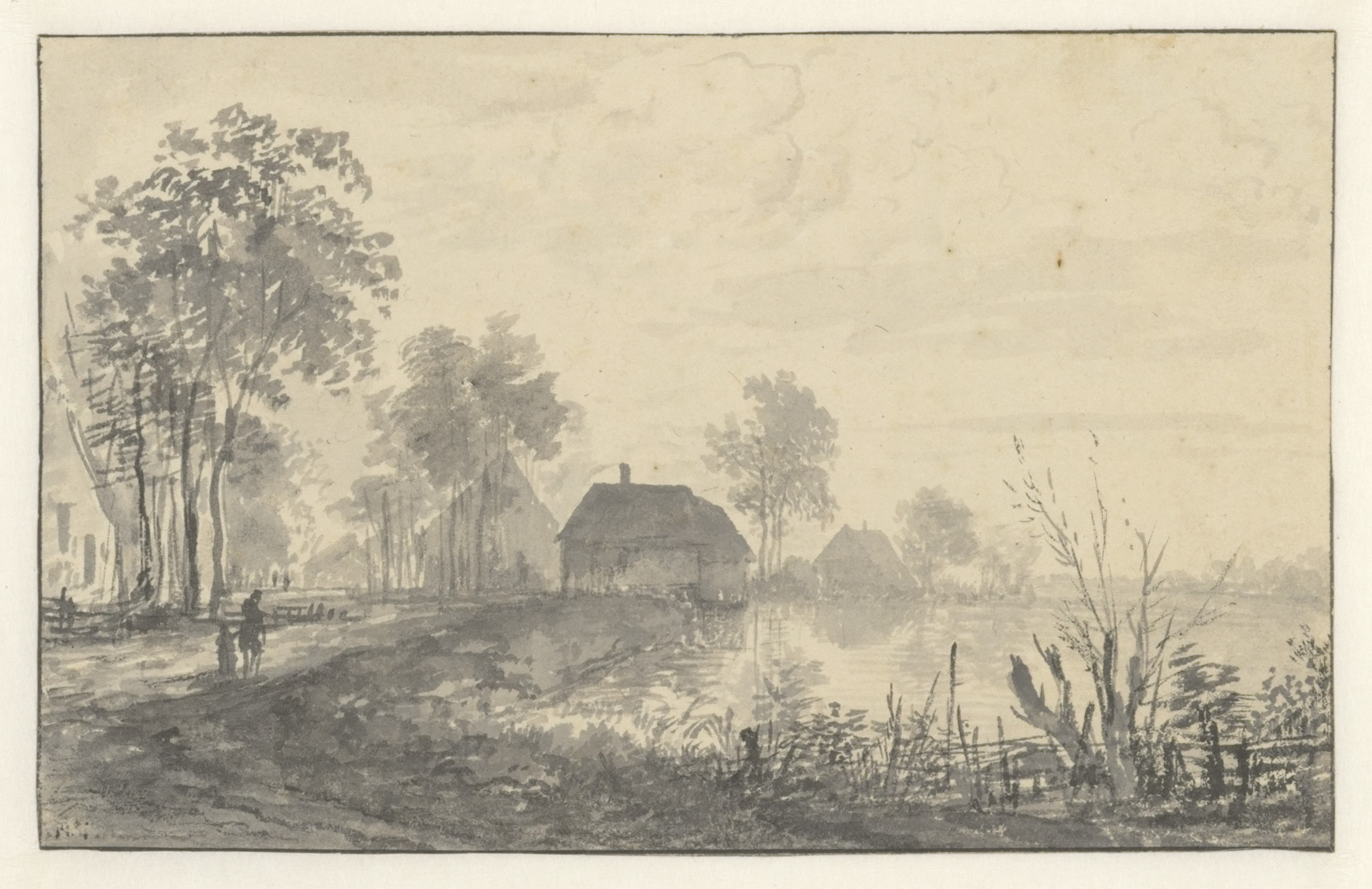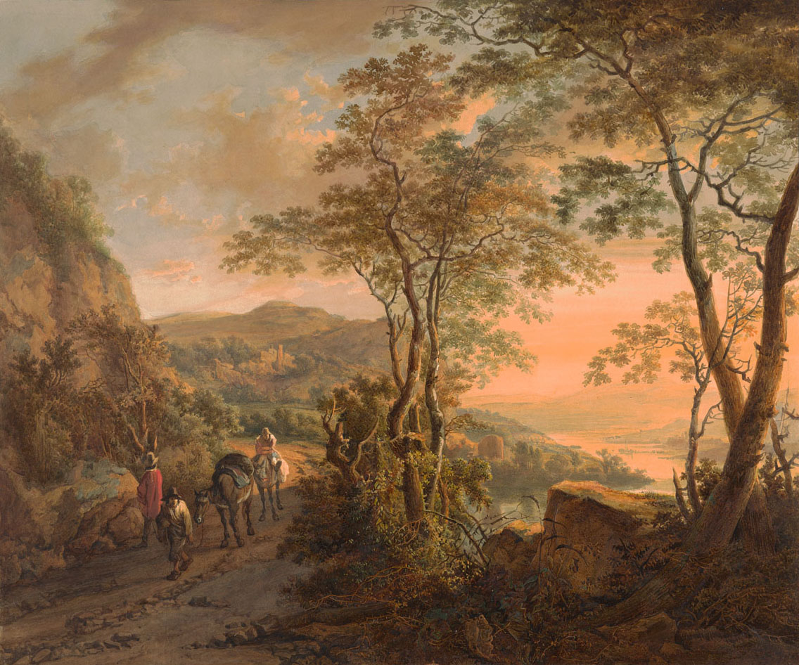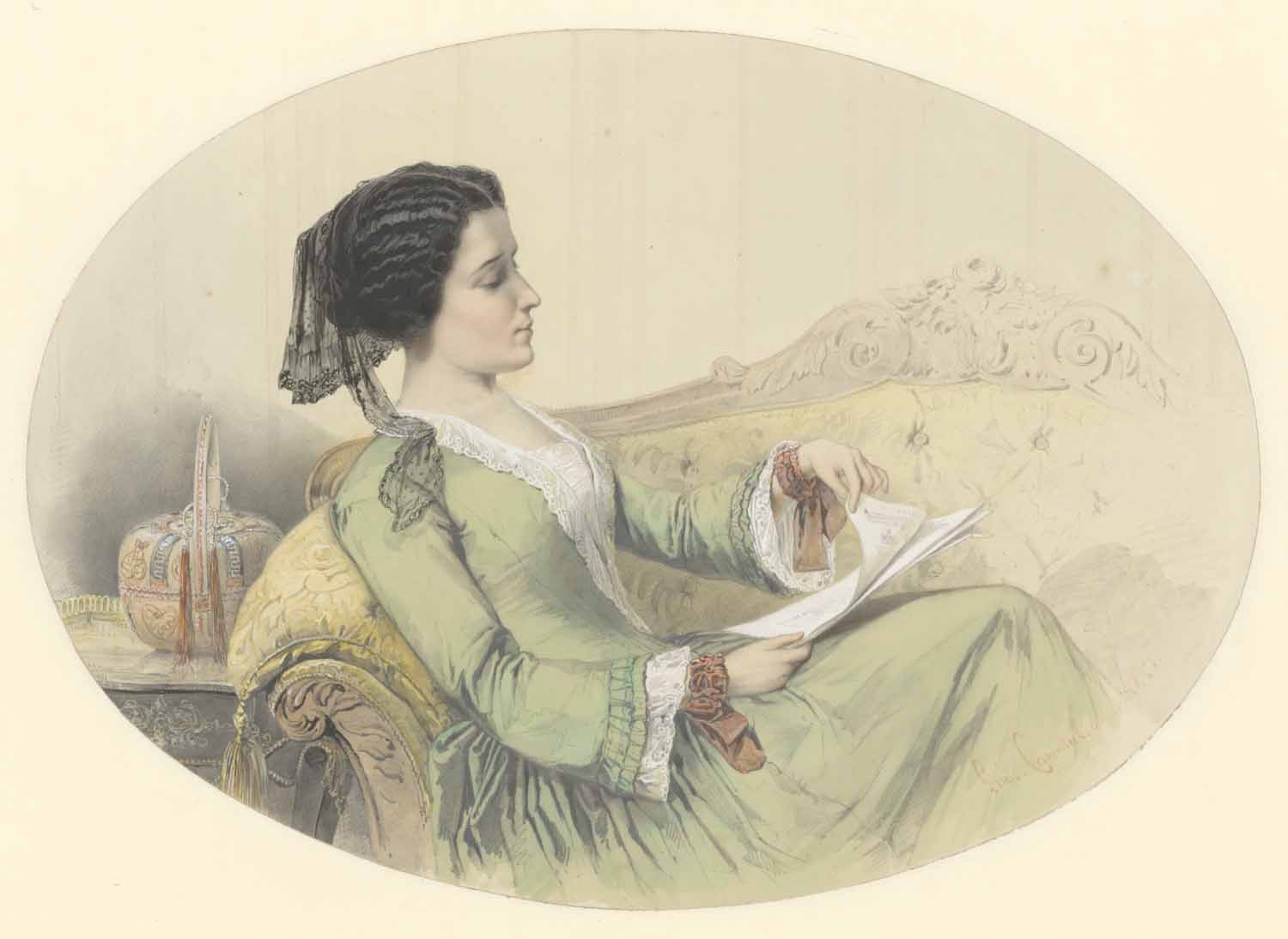 Eene laan, waarin een heer en eene dame met gevolg, ...