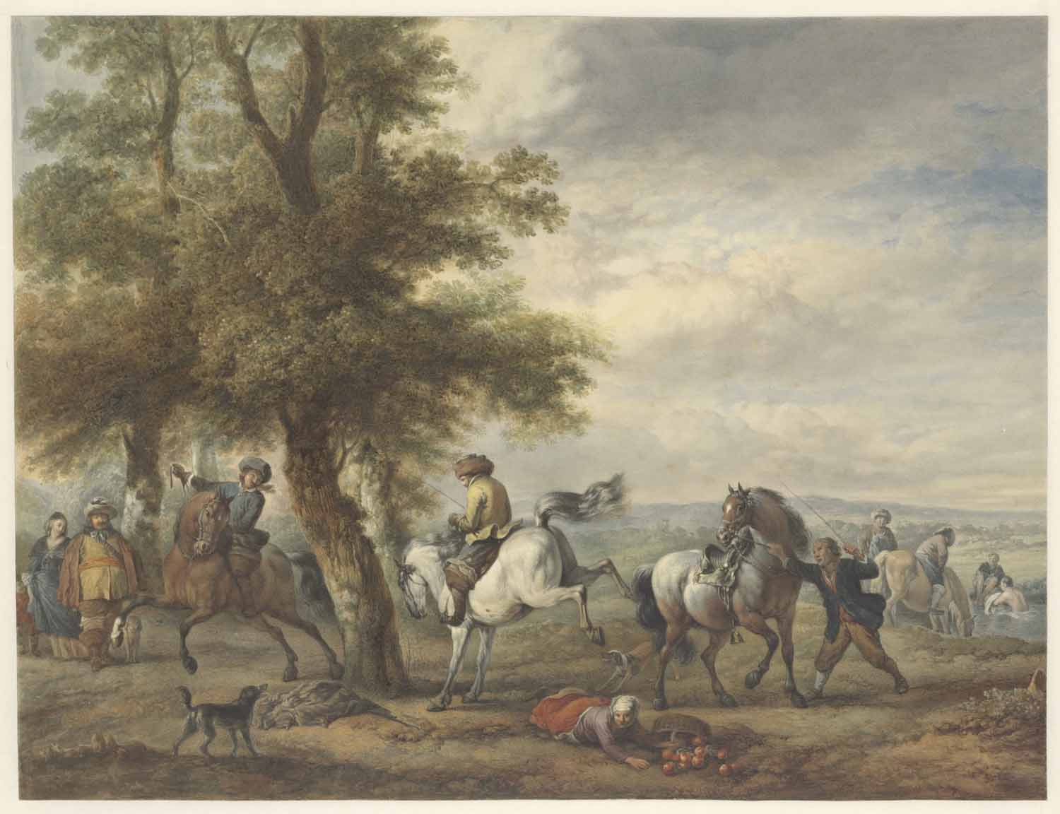 Een achteruitslaand paard. Naar PH. Wouwerman