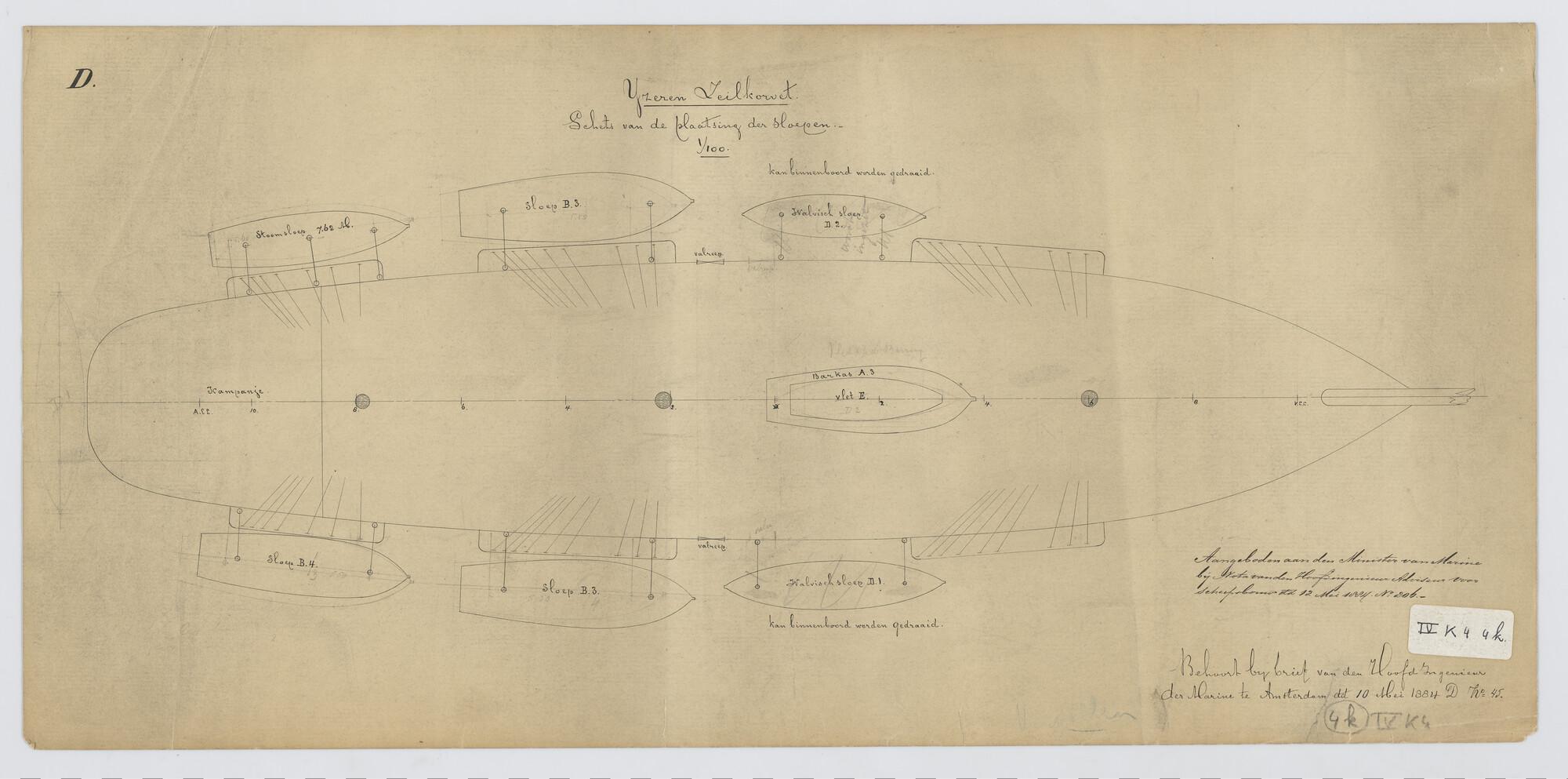 De schoener Zr.Ms. 'Argus', 1881. Verdeling waterruim