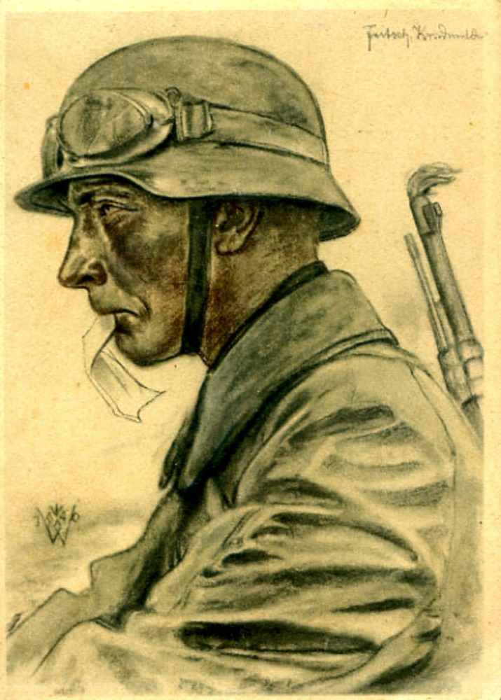 Ansichtkaart met daarop een Duitse ordonnans. ca. 19...