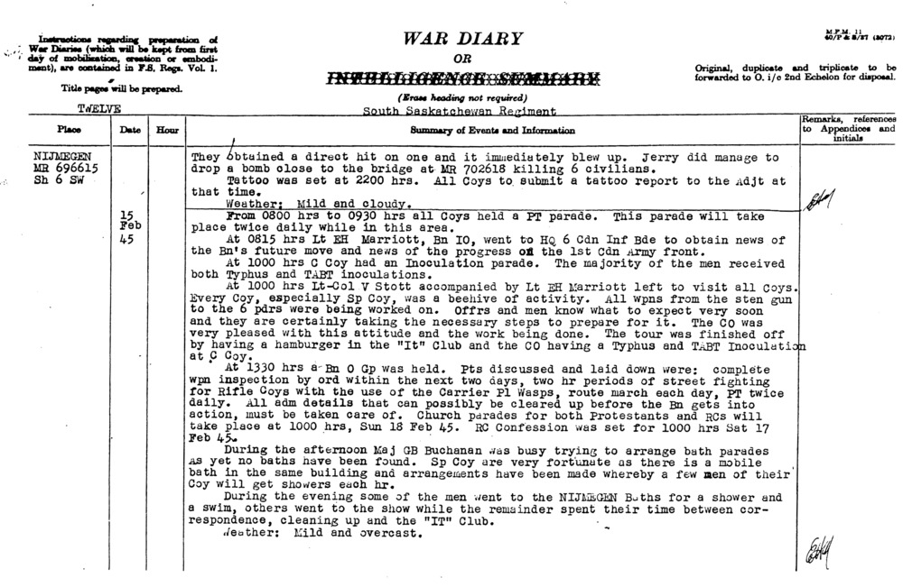 War Diary South Saskatchewan Regiment, 1 - 28 feb. 1...