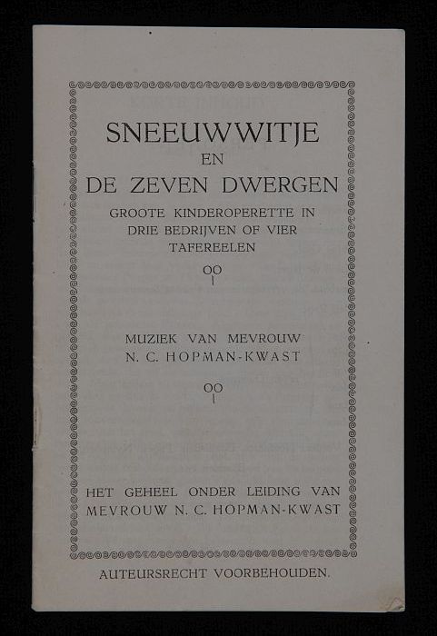 Programma in kaft van de kinderoperette "Sneeuwwitje...