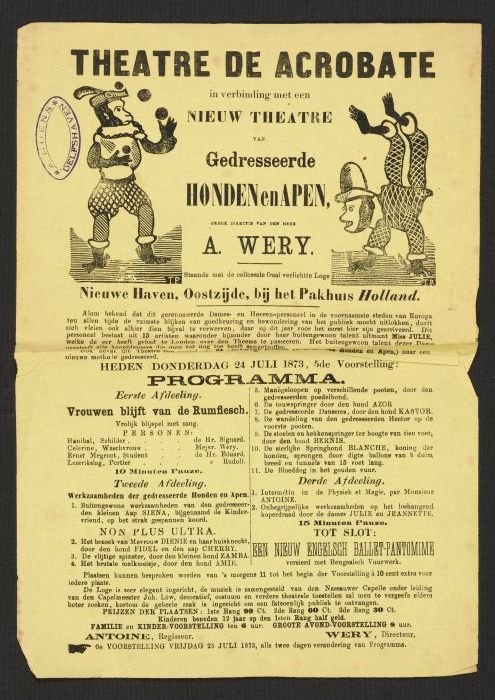 Programma "Theatre de Acrobate" met gedresseerde ape...