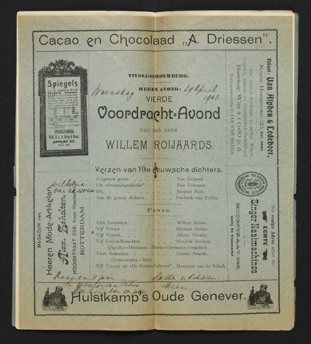 Groote Schouwburg Rotterdam, programma van "Op den b...