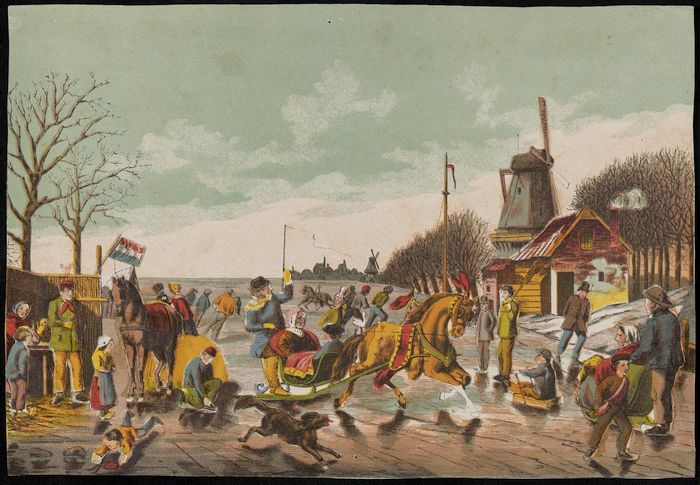 Plakplaat met voorstelling van ijsvermaak op een pla...