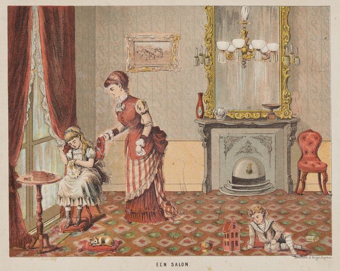 Plakplaat met voorstelling van speelkamer vol meisje...