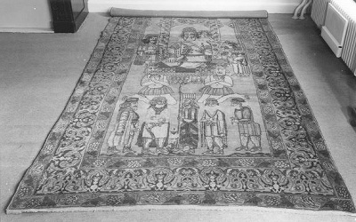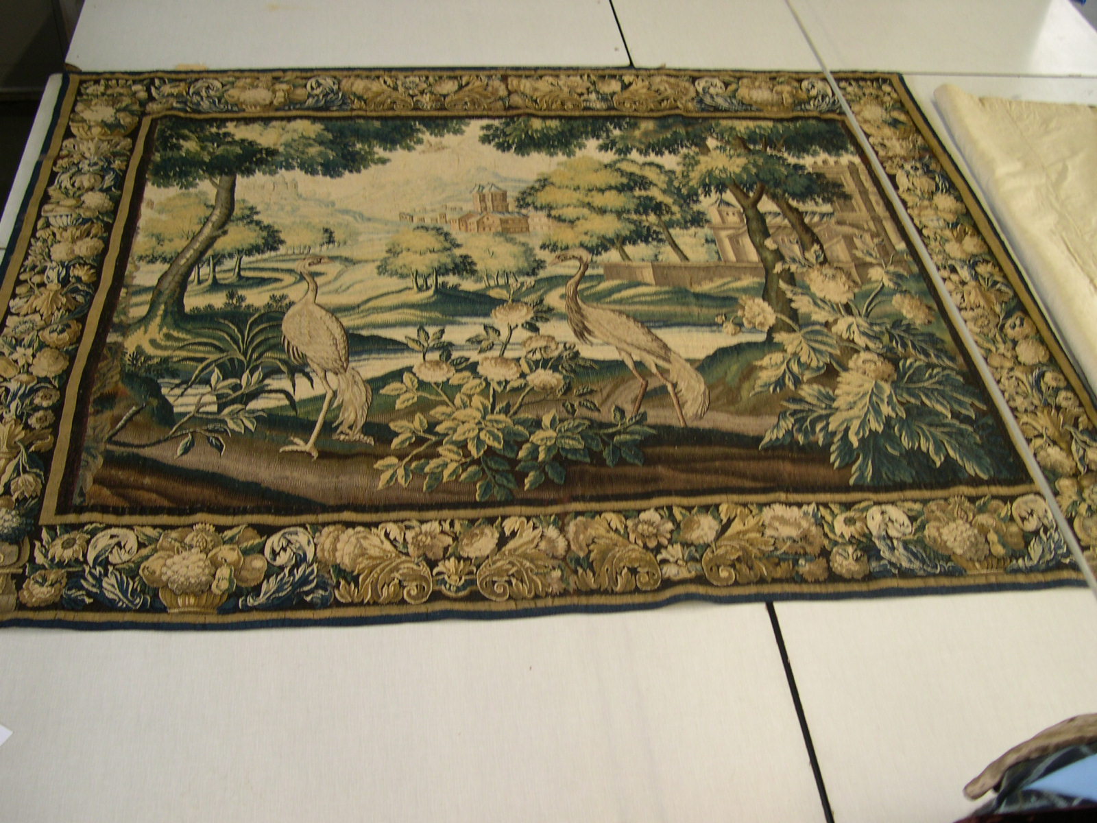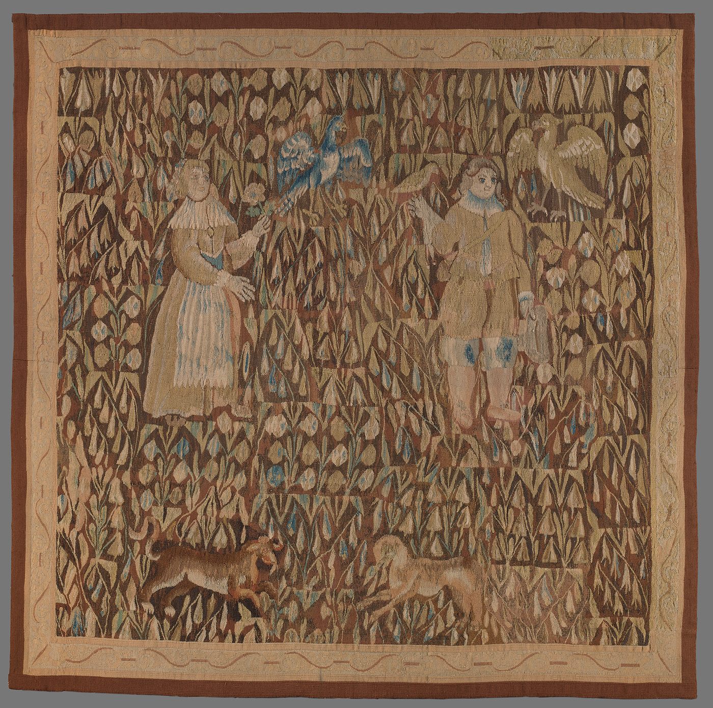 Wandtapijt: millefleurs met 2 figuren en dieren