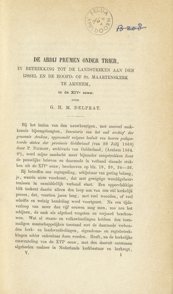 De abdij Prumen onder Trier, in betrekking tot de la...