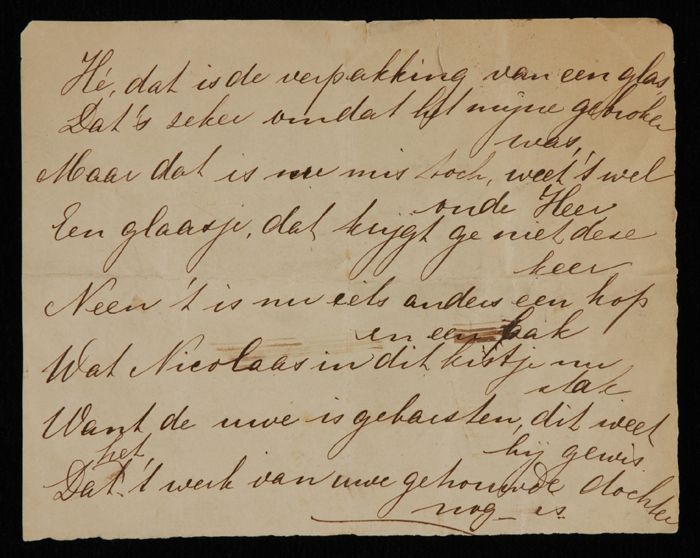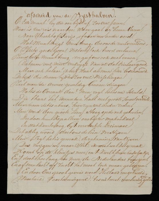 Handgeschreven gedicht getiteld "afscheid van de Zes...