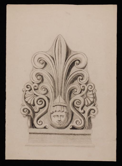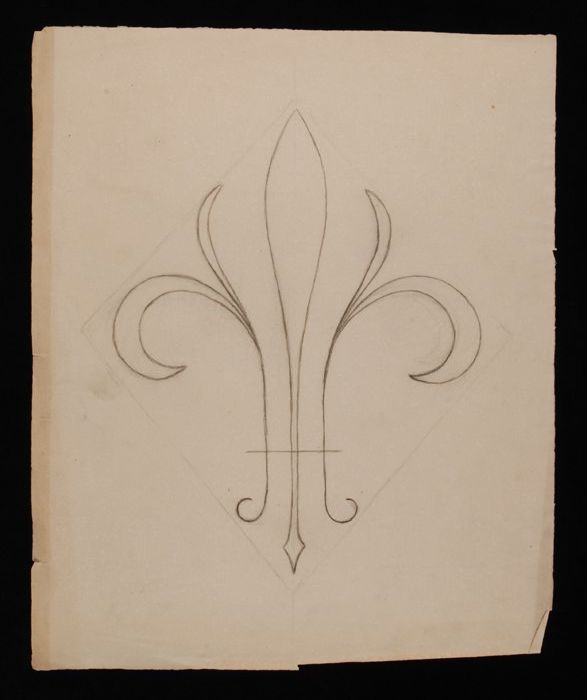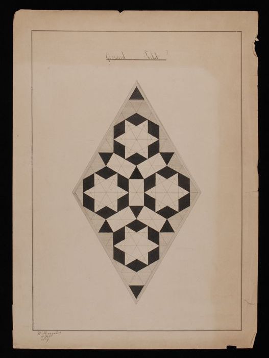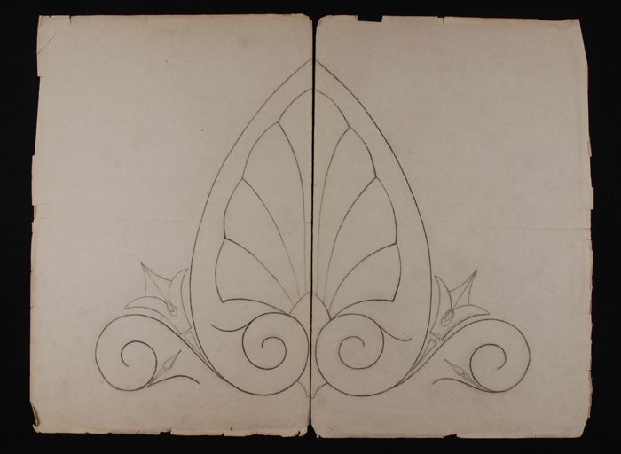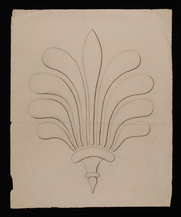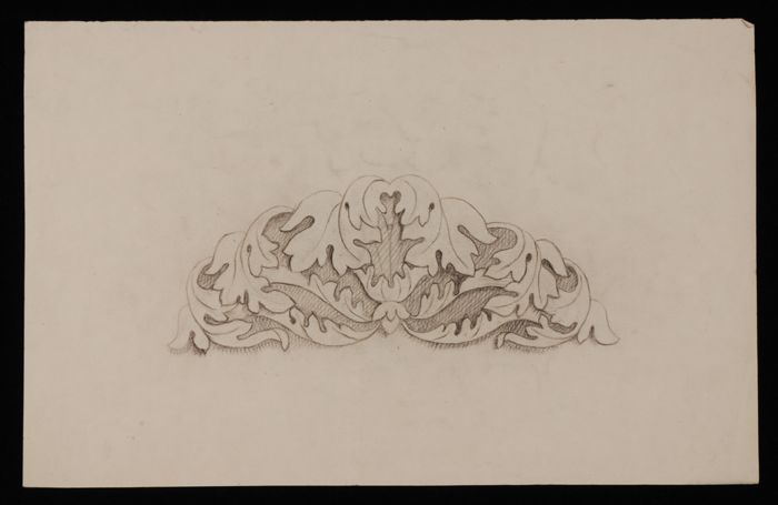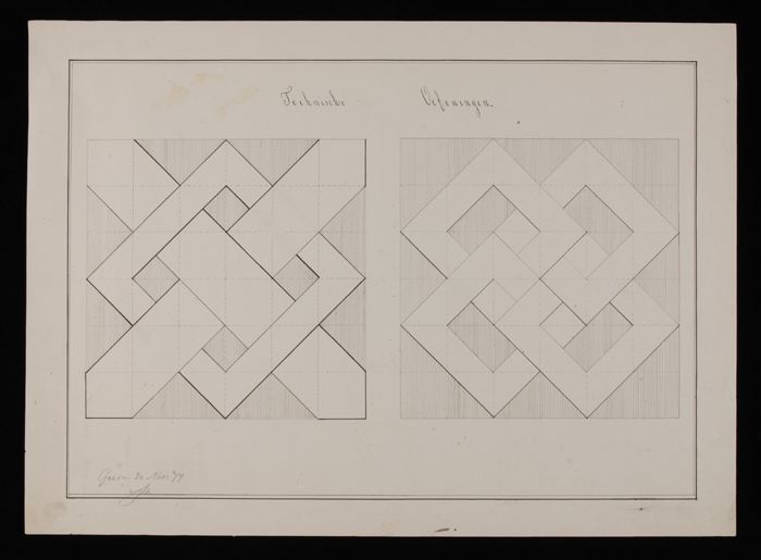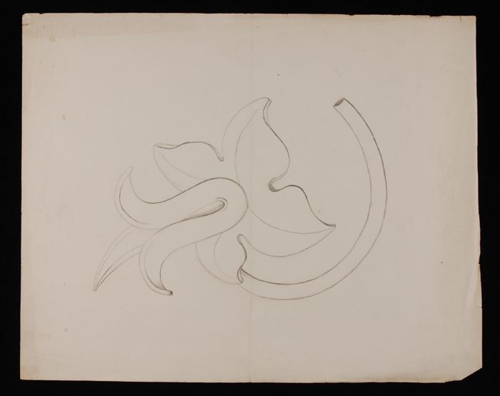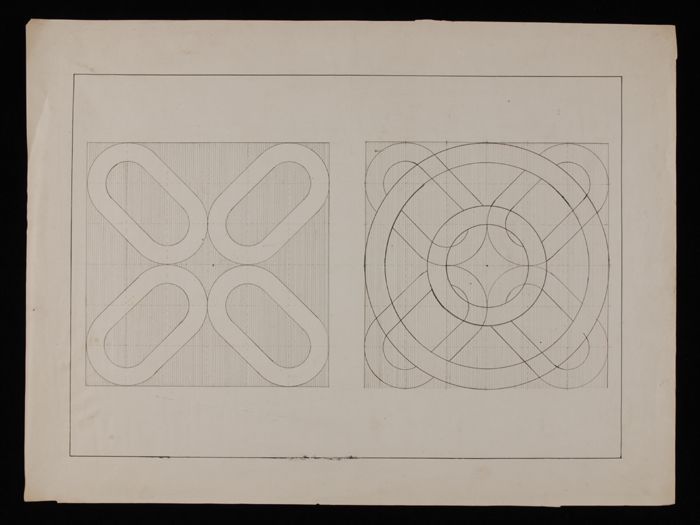Ontwerptekening van twee abstracte ornamenten, boven...