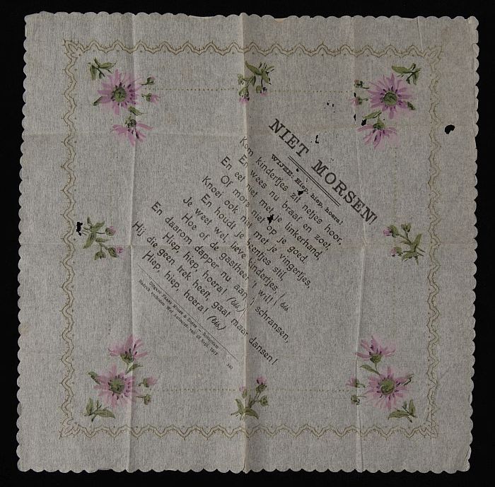 Vierkant, éénlaags servet met tekst van lied "Niet m...