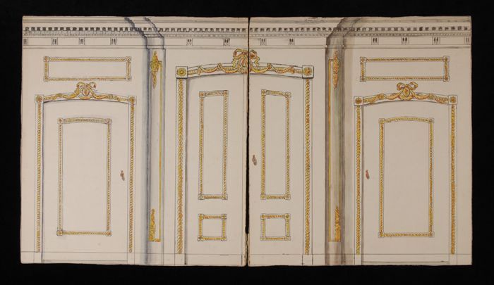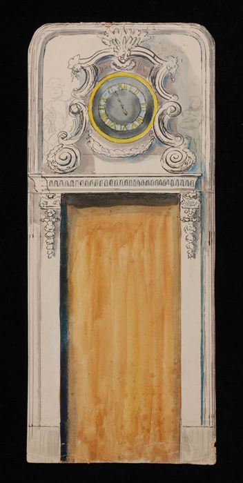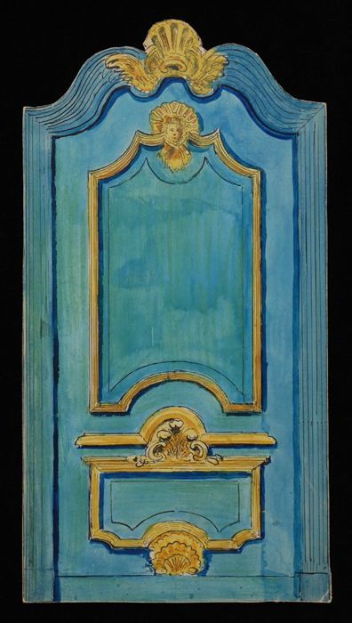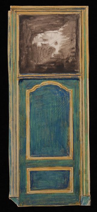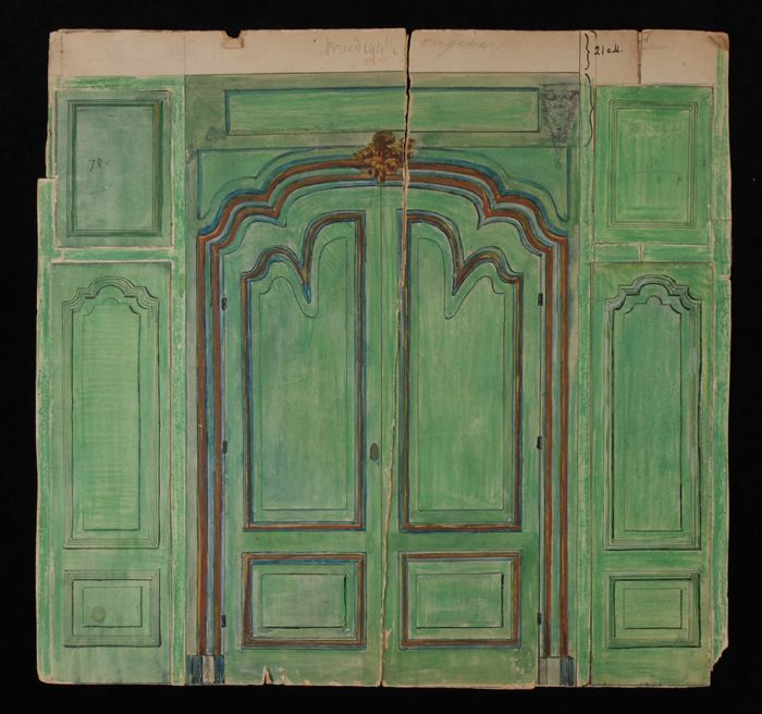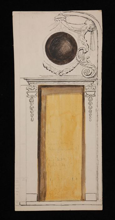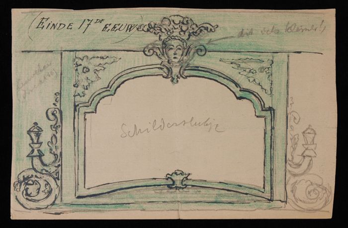 Aquarel in de vorm van een rijkversierde deur, gesch...