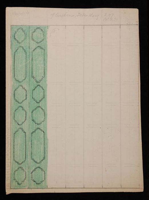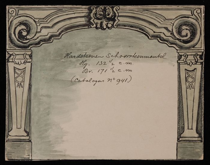 Tekening van schoorsteenbetimmering in groen, ondera...