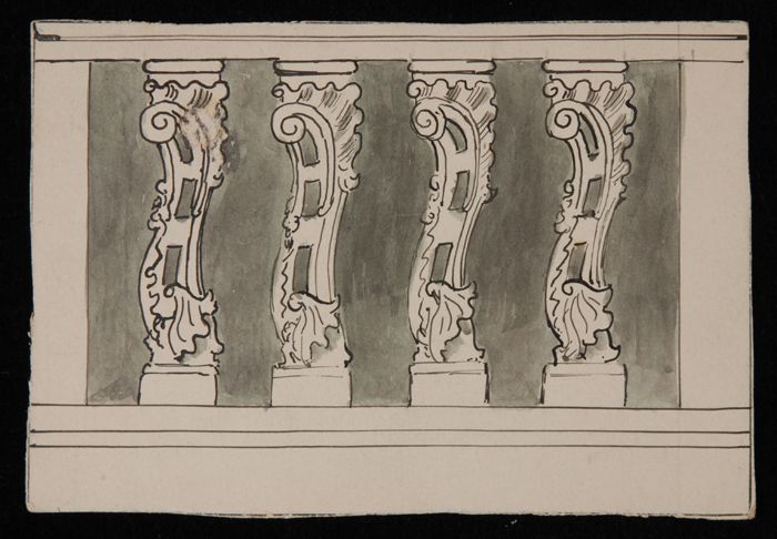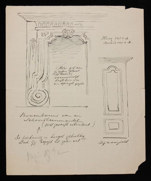 Schetsmatige tekening van bovenbouw van een schoorst...
