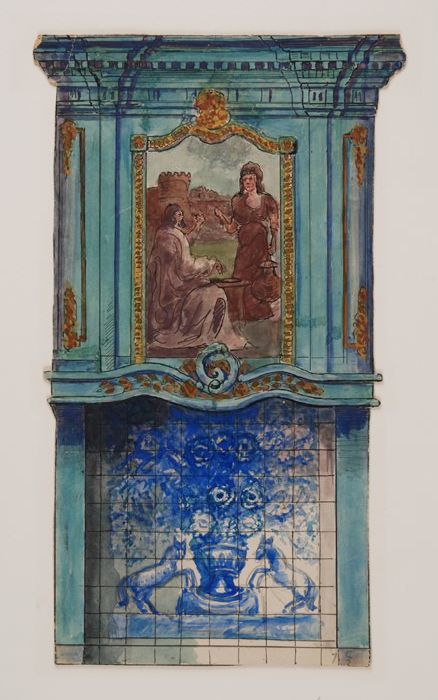 Aquarel in de vorm van een schoorsteenmantel met gek...