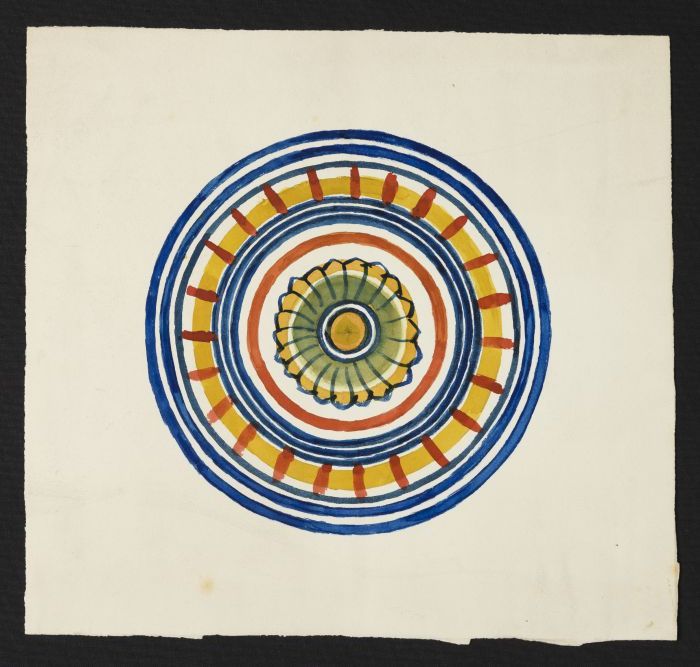 Aquarel met concentrische decoratie in hoofdzakelijk...