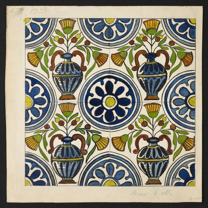 Ingekleurde tekening van vierkante tegel beschilderd...