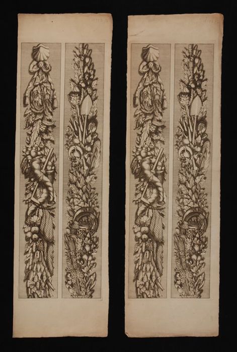 Twee identieke prenten met naast elkaar twee afbeeld...