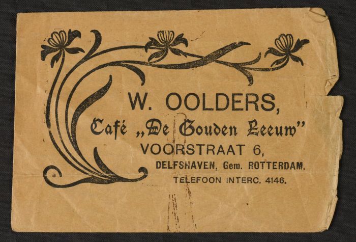 Papieren zakje met in zwart opdruk "W. Oolders, Café...