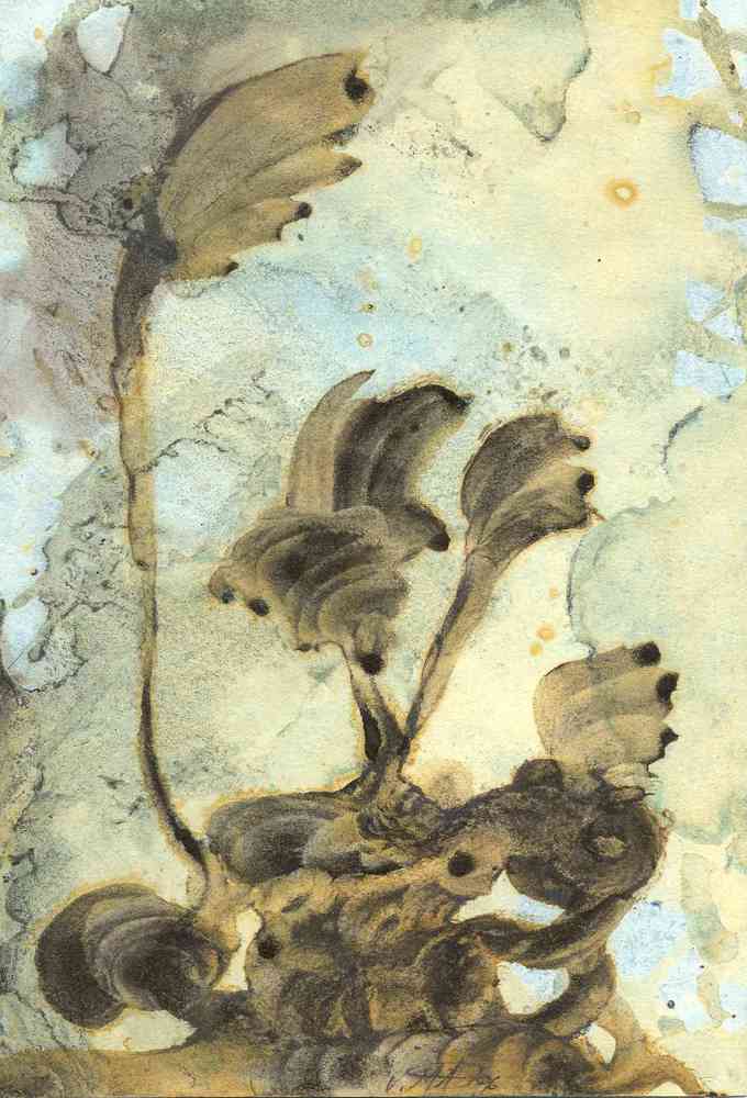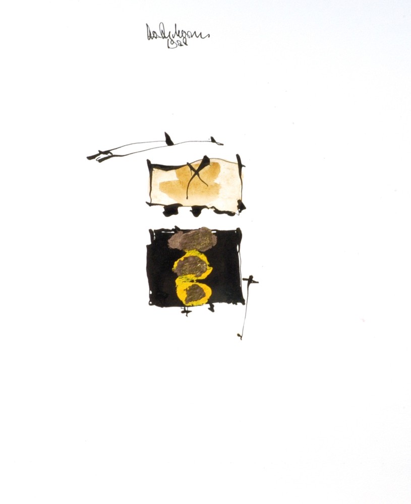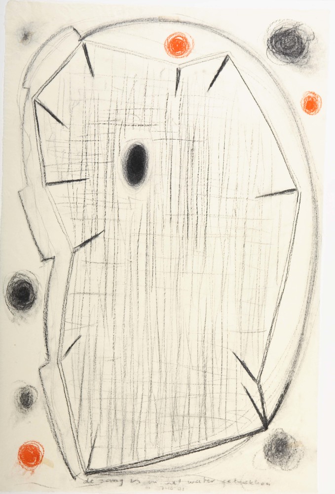001: z.t., houtskool, inkt en waterverf, 1994; 002: ...