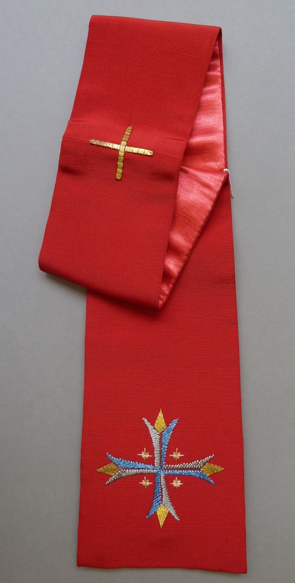 Rode manipel met blauw-grijs kruisje