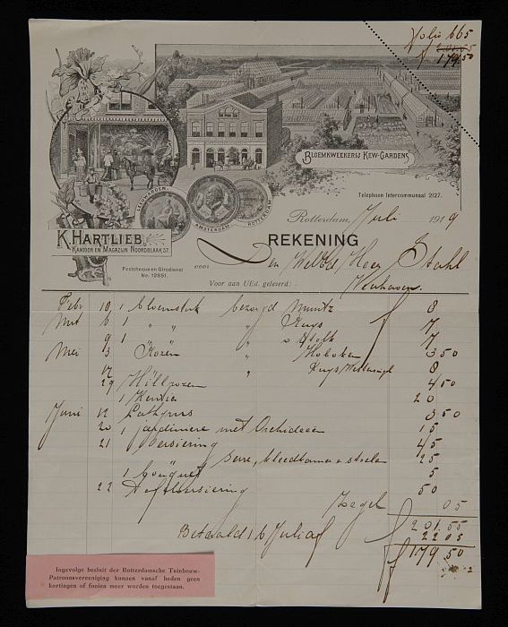 Rekening voor de heer Stahl, Veerhaven, voor besteld...