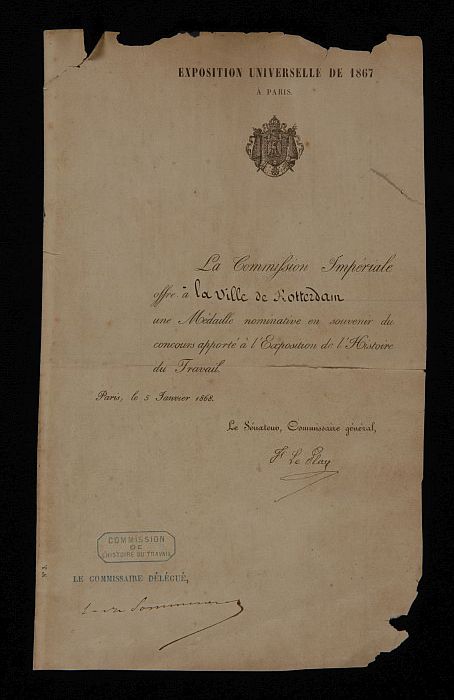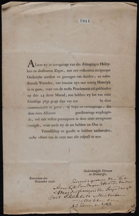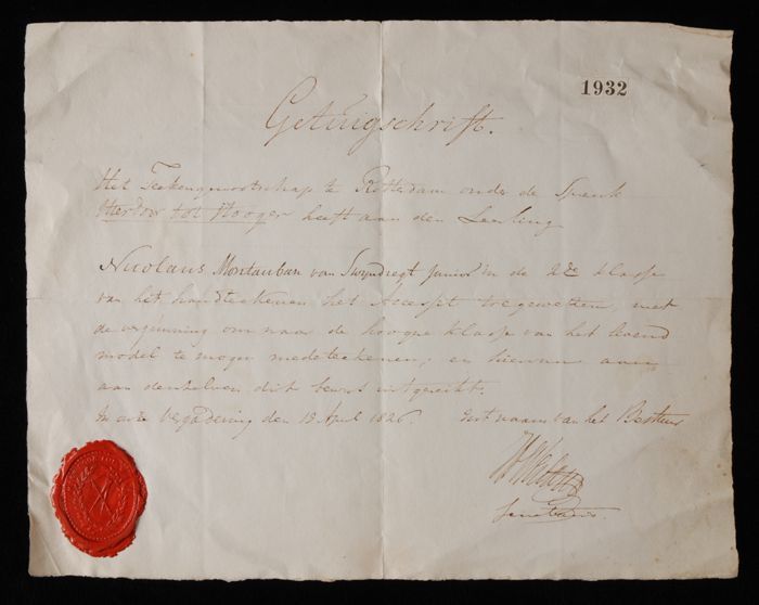 Gedrukt huwelijksbewijs met wapen van Rotterdam en i...