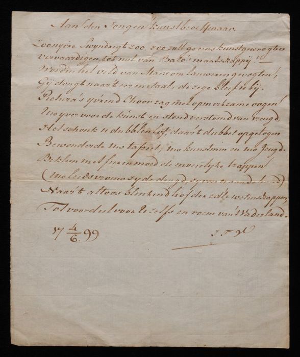 Gedicht getiteld "Aan den jongen kunstbeoefenaar", g...
