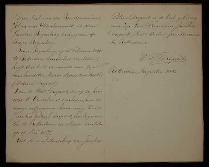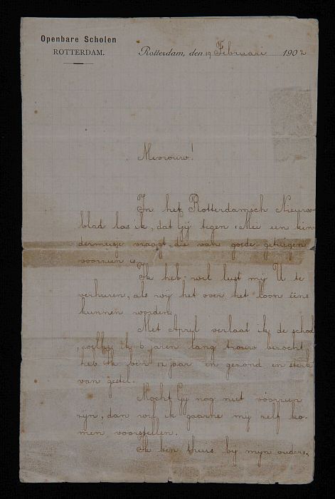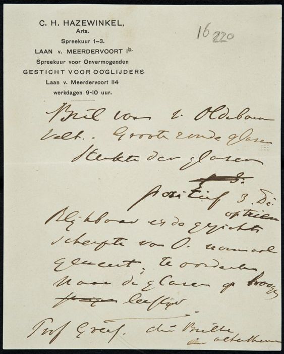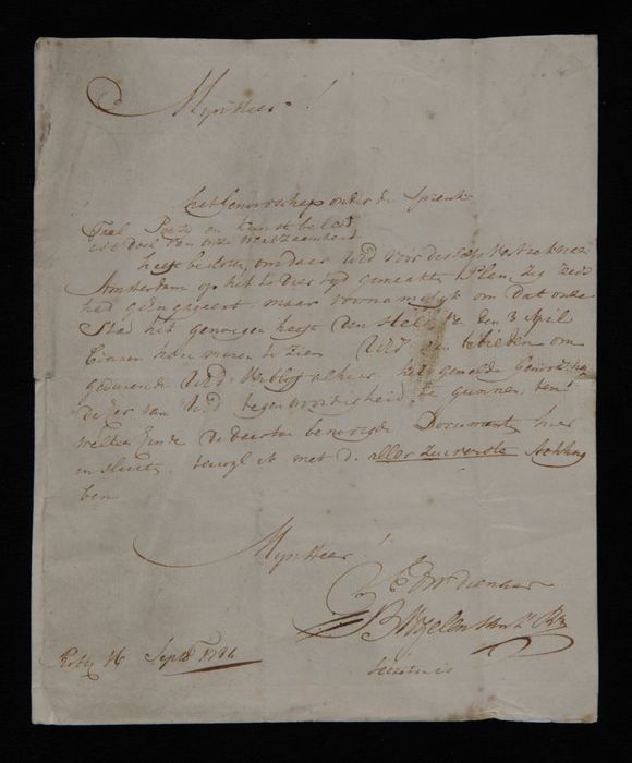 Handgeschreven brief van "Genootschap onder de Spreu...