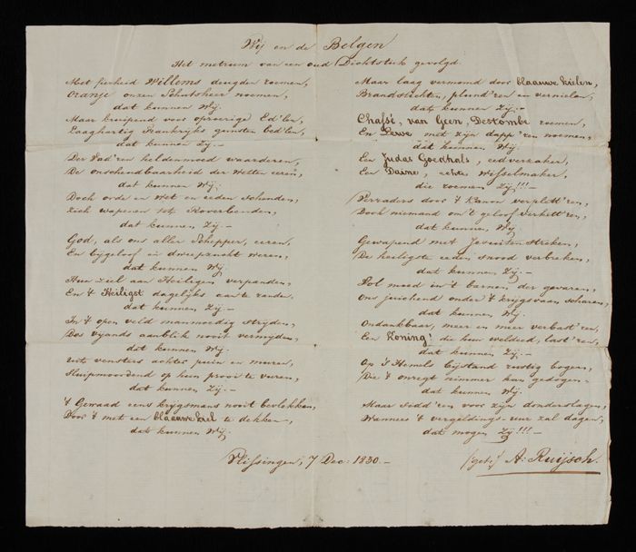 Handgeschreven gedicht, over Belgische opstand