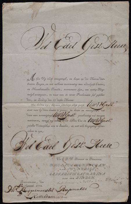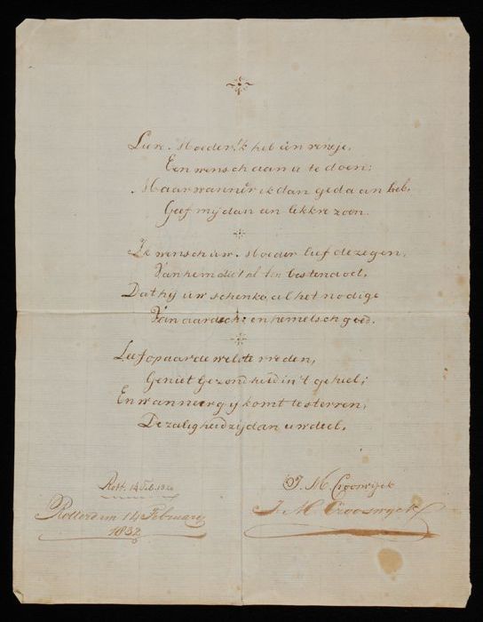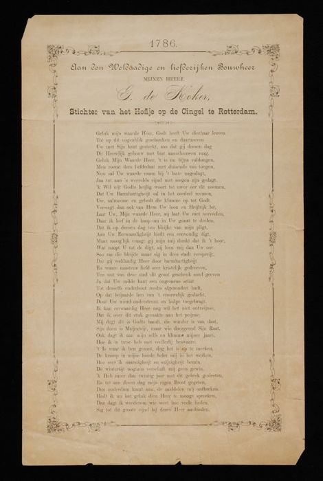 Gedrukt gedicht, gericht aan Gerrit de Koker, sticht...